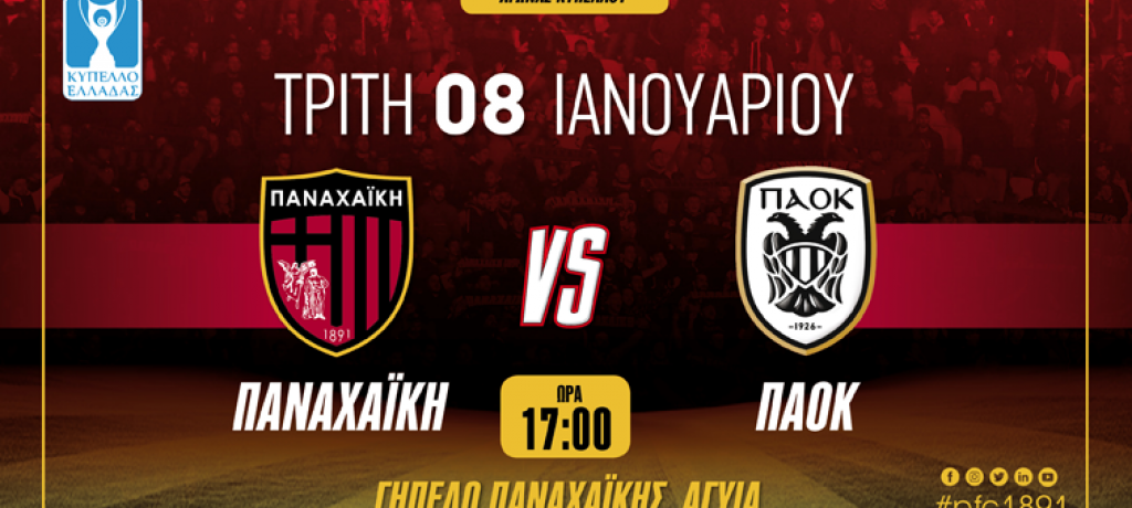 Η ΠΑΕ Παναχαϊκή 1891, ενόψει του αγώνα με τον ΠΑΟΚ, στα πλαίσια της 5ης φάσης του Κυπέλλου Ελλάδος, που θα διεξαχθεί την Τρίτη 08/01/19 και ώρα 17:00, στο γήπεδο της Παναχαϊκής στην Αγυιά, ανακοινώνει τα εξής: