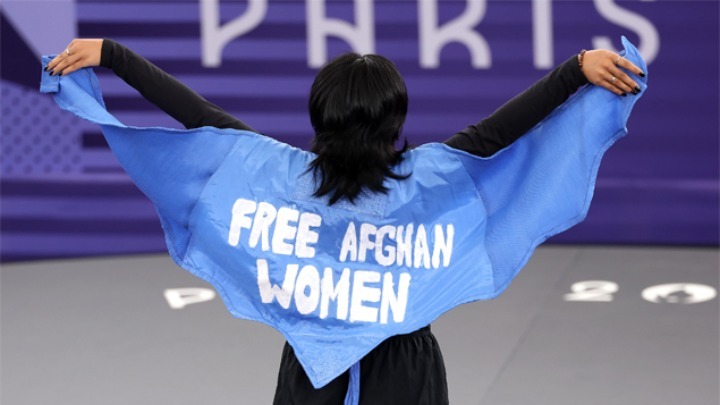 Η Αφγανή αθλήτρια του αθλητικού χορού (breaking), Μανίζα Ταλάς αποκλείσθηκε από τους Ολυμπιακούς Αγώνες «Παρίσι 2024», επειδή λίγο πριν αγωνισθεί εμφανίσθηκε φορώντας στην πλάτη μία σημαία με την επιγραφή «Ελευθερώστε τις Αφγανές».