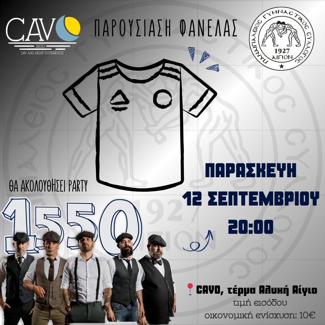 Η νέα φανέλα του Παναιγιαλείου για τη νέα σεζόν αποκαλύπτεται από τη διοίκηση του συλλόγου σε ειδική εορταστική εκδήλωση την Παρασκευή 12 Σεπτεμβρίου (20:00) στο CAVO (Αλυκή, Αίγιο).