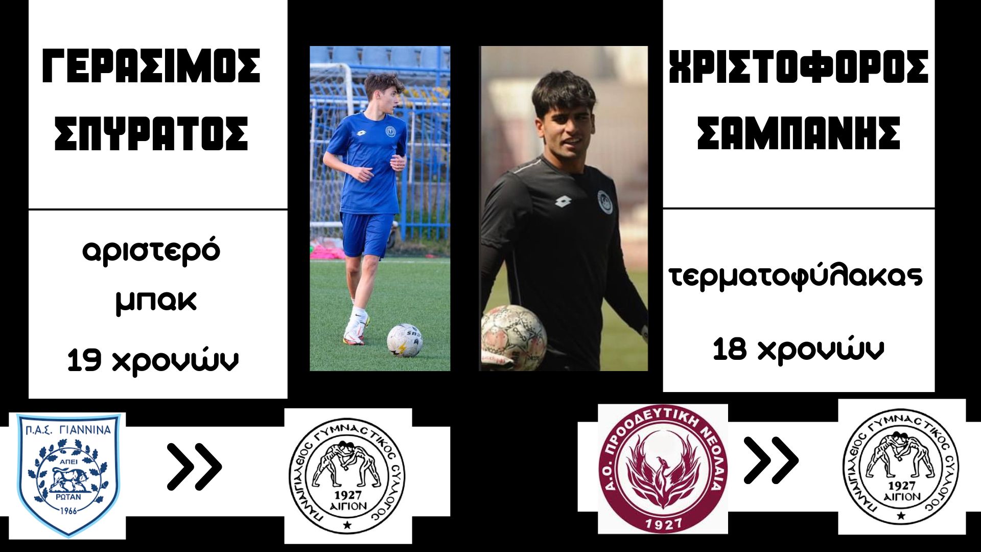 Ο Σαμπάνης είναι τερματοφύλακας και αγωνιζόταν στην Προοδευτική, ενώ ο Σπυράτος ήταν στον ΠΑΣ Γιάννινα και η θέση του είναι αριστερός μπακ.