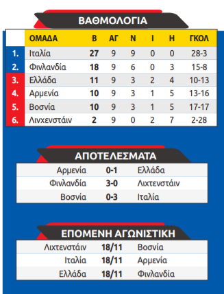 Το ματς δυστυχώς δεν έχει βαθμολογικό ενδιαφέρον, μιας και η Εθνική μας δεν έχει ελπίδες πρόκρισης, ενώ η Φινλανδία εξασφάλισε την πρόκριση, με τον Φαν Σιπ να προχωράει σε 1-2 αλλαγές στο βασικό σχήμα και δίχως να αντιμετωπίζει προβλήματα τραυματισμών.