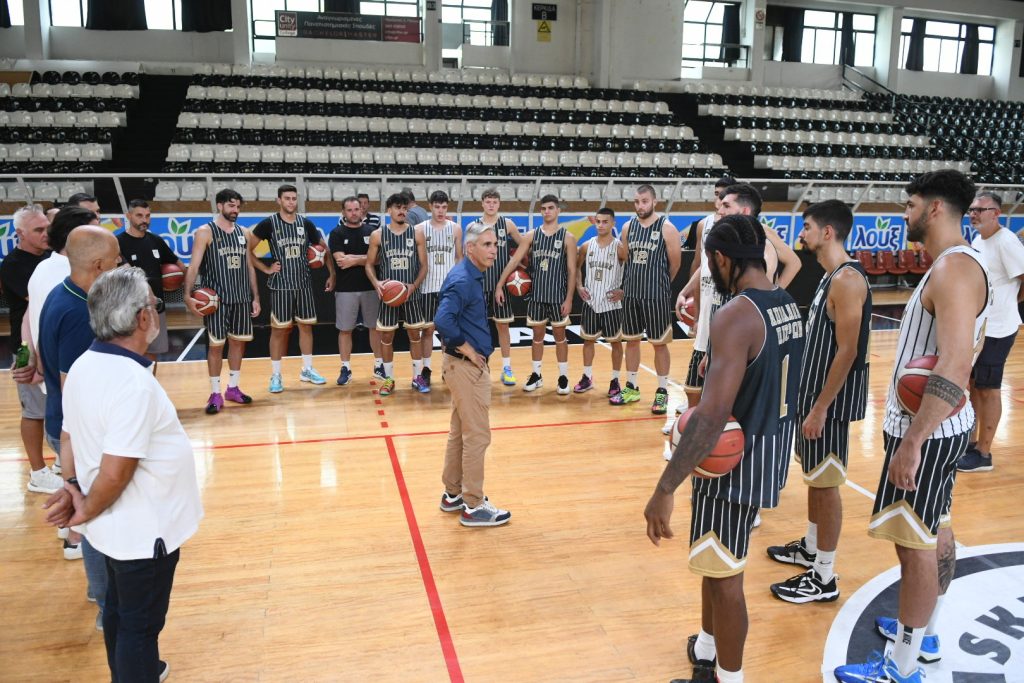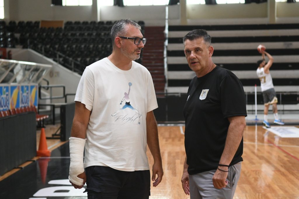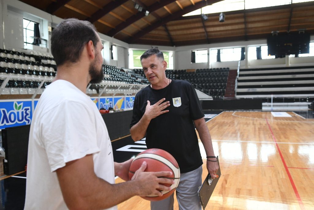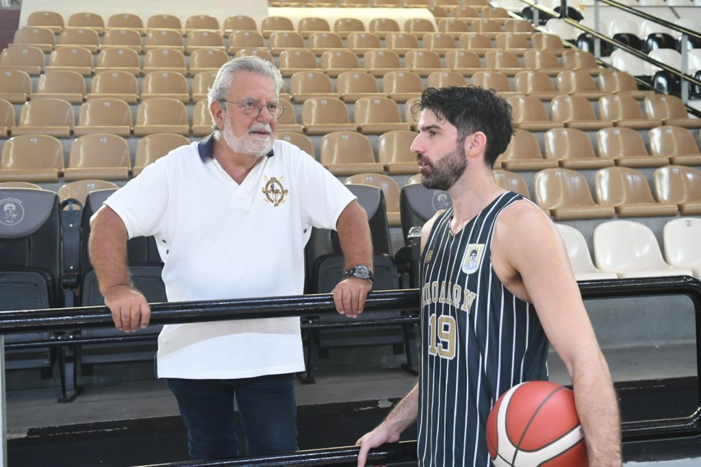 Έτσι, βρέθηκε από νωρίς στο κλειστό της Περιβόλας, έχοντας τη δυνατότητα να τα πει με πολλούς και διάφορους για το φετινό μεγάλο εγχείρημα (στη φωτό με τον αρχηγό Ζούμπο), ενώ βρέθηκε και στο ημικύκλιο του κλειστού στην εναρκτήρια ομιλία του γεν. γραμματέα Απ. Ζέρβα προς τους παίκτες.