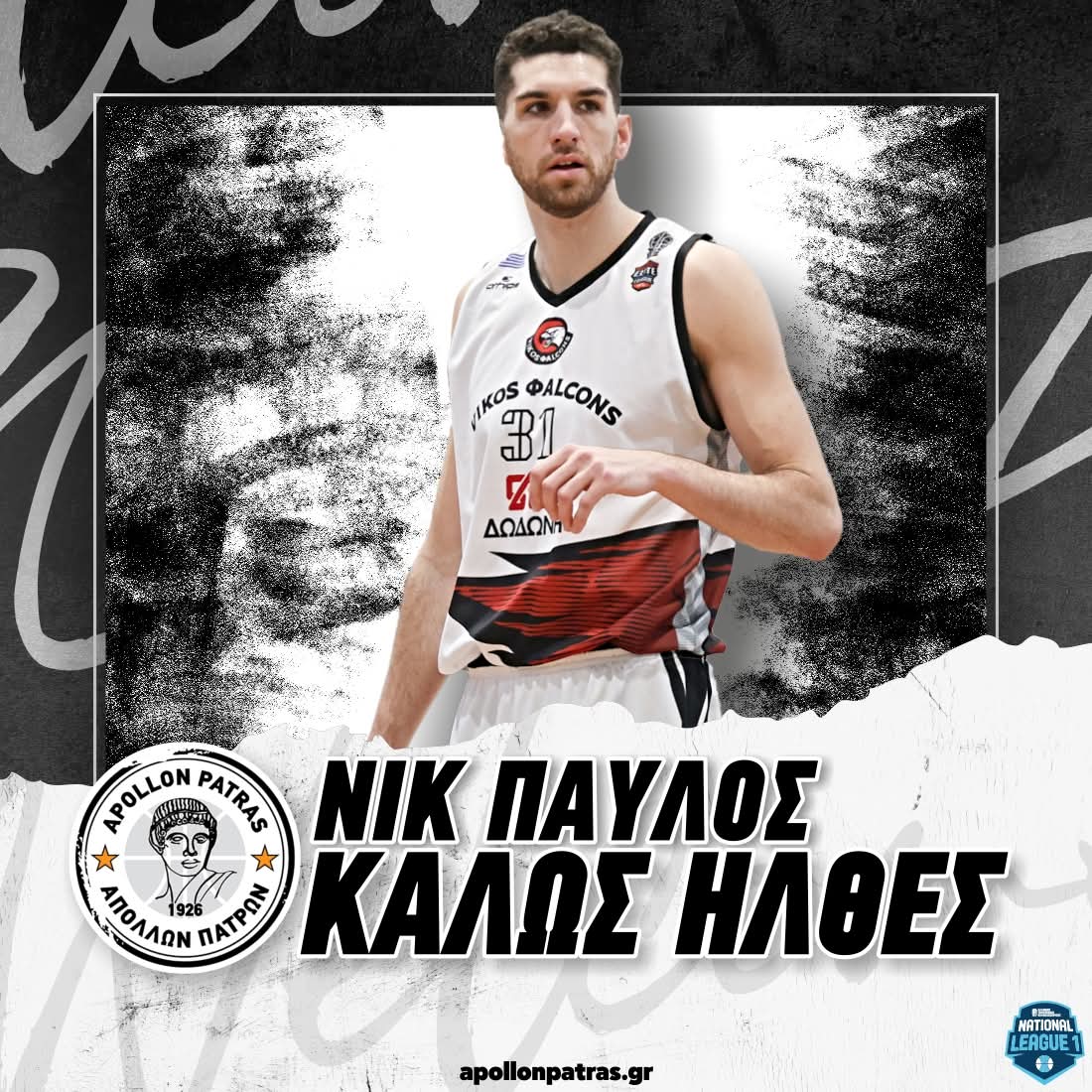 Ο Α.Σ. Απόλλων Πατρών ανακοινώνει την έναρξη της συνεργασίας του με τον Νικ Παύλο, ο οποίος θα ενισχύσει την ομάδα μας τη σεζόν 2025–2026.
