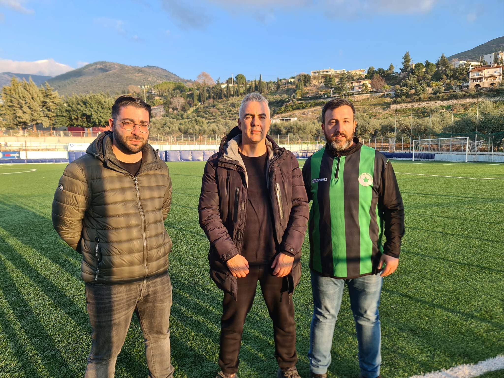 Στο μέσο της φωτογραφίας είναι ο τεχνικός του Λεοντίου, δεξιά ο Φάνης Αντωνόπουλος (πρόεδρος) και αριστερά ο Αντώνης Ζαχαρόπουλος (μέλος του Δ.Σ.).