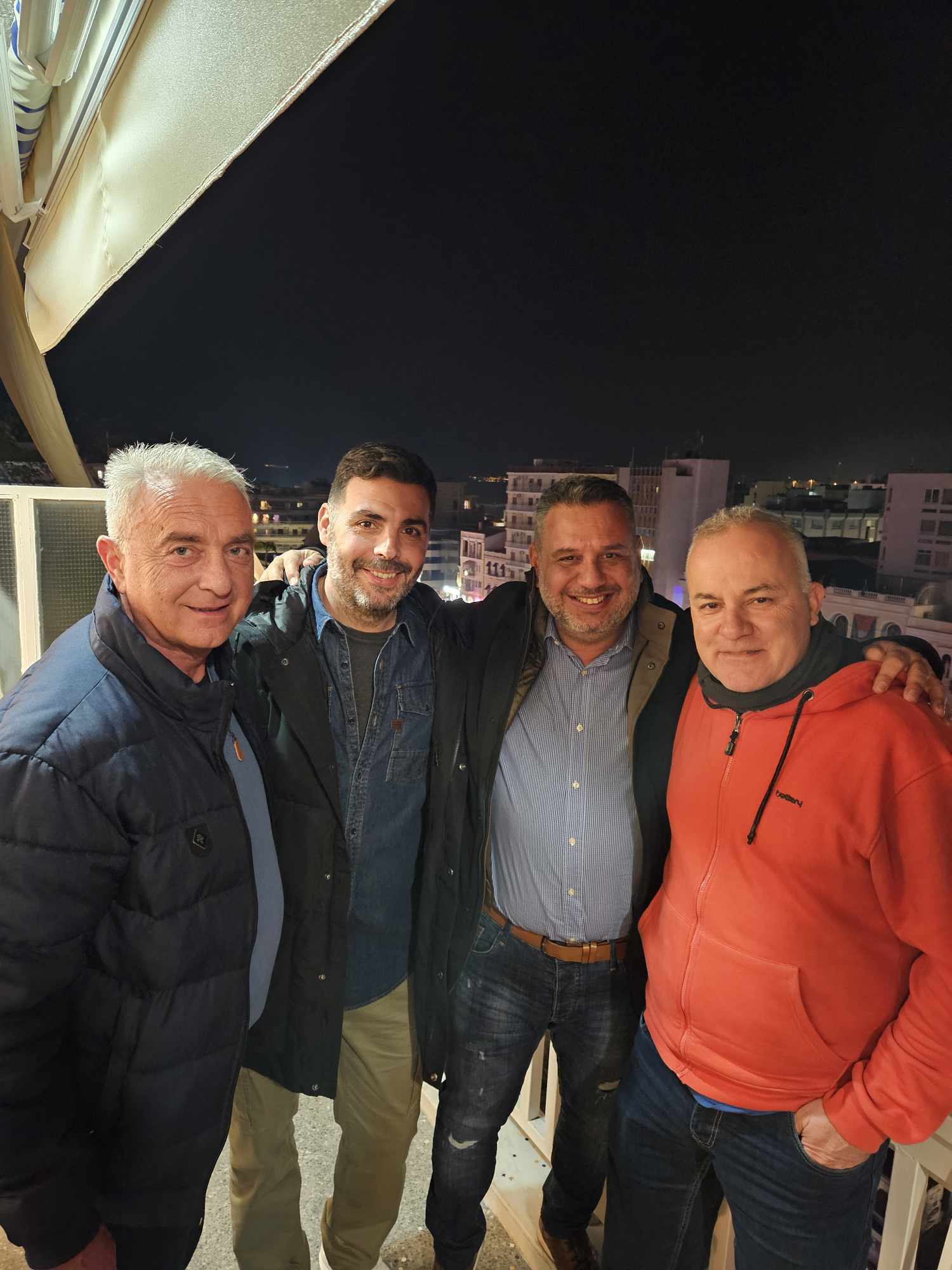 Έτσι οι Σάκης Πεφάνης, Πολύβιος Καρέλας, Αλέκος Μπογιάκης και Γιώργος Κουρλέσης (από αριστερά προς δεξιά) γιόρτασαν με το τέλος του αγώνα.