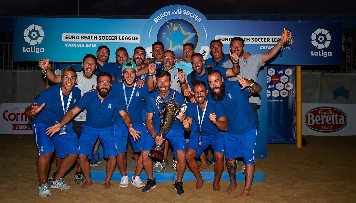 Η ελληνική ομάδα αναρριχήθηκε στην κορυφή της Euro Beach Soccer League συλλέγοντας 9 βαθμούς και απέδειξε ότι είναι πανέτοιμη να ανταποκριθεί στην πρόκληση των ΙΙ Μεσογειακών Παράκτιων Αγώνων, που θα διεξαχθούν στην Πάτρα από τις 25 έως τις 31 Αυγούστου.
