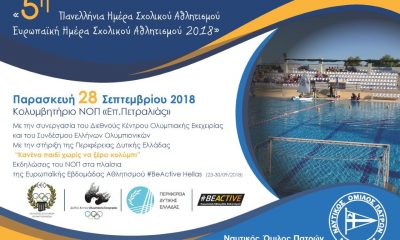 Η Επιτροπή Διοίκησης του ΠΕΑΚ Πάτρας συμμετέχει φέτος, για πρώτη φορά, στις εκδηλώσεις για την Ευρωπαϊκή Ημέρα Σχολικού Αθλητισμού, που έχει οριστεί από το Υπουργείο Παιδεία...
