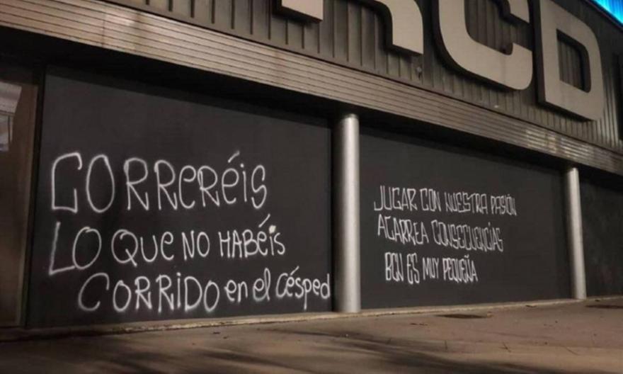 «Θα τρέξετε όπως δεν τρέχετε στο γήπεδο. Παίζετε με το πάθος μας και θα έχετε συνέπειες. Να χρησιμοποιείτε λιγότερο τα social media. Είστε παίκτες μισθοφόροι. Εσείς δεν είστε ποδοσφαιριστές, είστε πουτ…ς γιοι!», ήταν μερικά από τα συνθήματα που γράφτηκαν στους τοίχους.