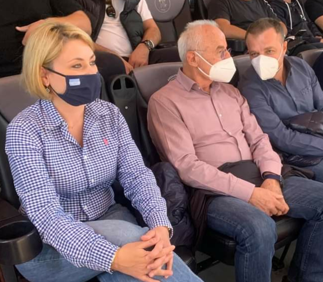 Δίπλα της ο πρόεδρος της ΚΑΕ Προμηθέας Κώστας Μπακαλάρος μαζί με τον γιο του Δημήτρη.