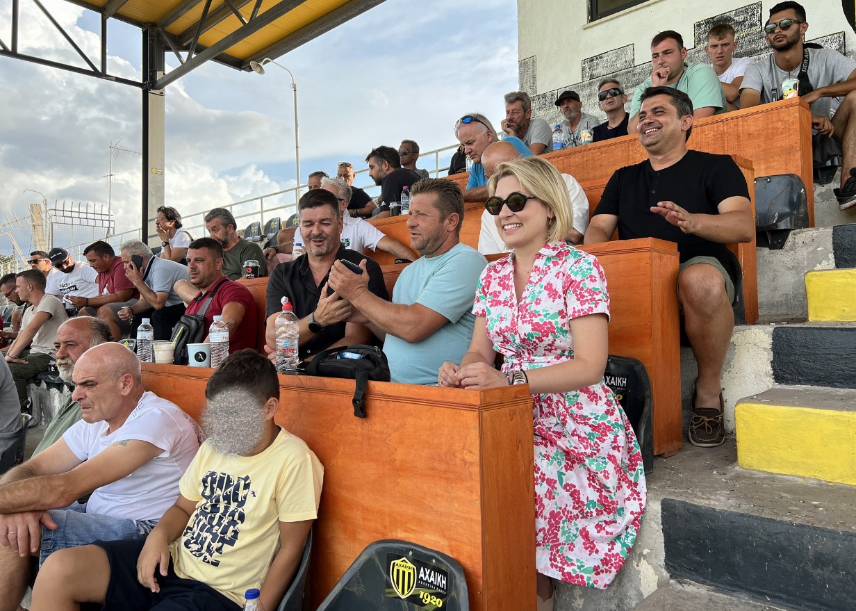 Ξεκινώντας από το γήπεδο ποδοσφαίρου, η κα Αλεξοπούλου παρακολούθησε τον φιλικό αγώνα της Αχαϊκής με τον Πήγασο και συζήτησε με τους παράγοντες της ομάδας για τα θέματα και τις απαιτήσεις της νέας αγωνιστικής περιόδου.