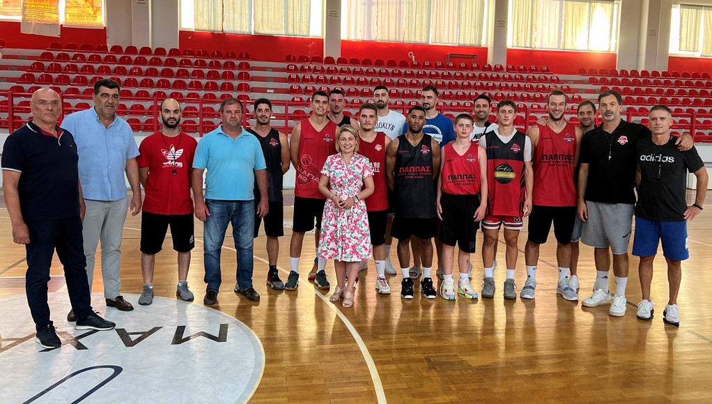 Στη συνέχεια, από το ποδόσφαιρο στο μπάσκετ, η Αχαιή Βουλευτής επισκέφθηκε το Κλειστό Γυμναστήριο της Κάτω Αχαΐας, την ώρα της προπόνησης της ομάδας μπάσκετ Αχαγιά ’82.