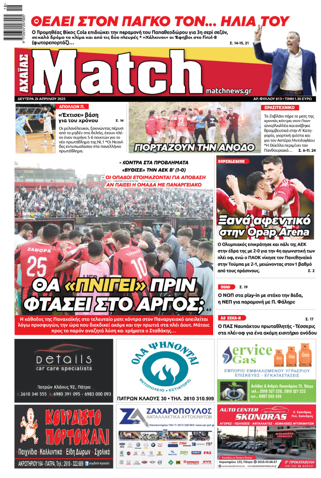 Διαβάστε στη «Match» αυτή την Δευτέρα: Θα «πνιγεί» πριν φτάσει στο Άργος;