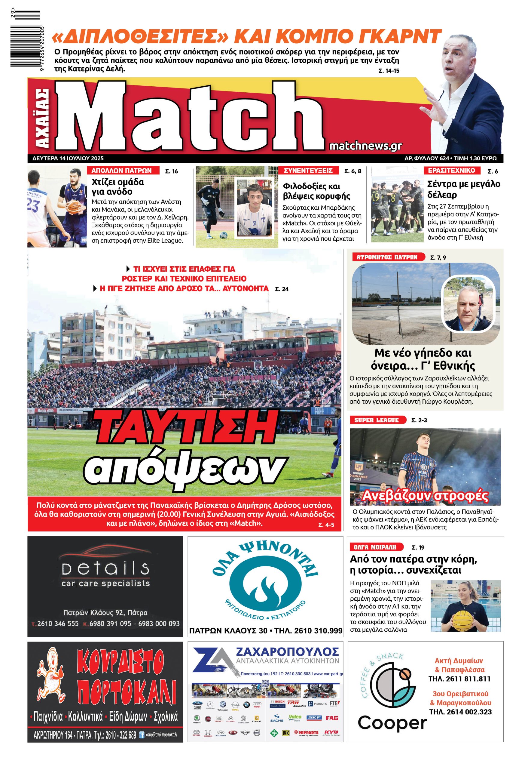 Διαβάστε στη «Match»: Η ταύτιση απόψεων και τα… αυτονόητα, οι διπλοθεσίτες του Προμηθέα και η αναβάθμιση του Ατρομήτου