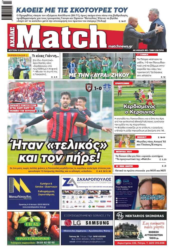 Διαβάστε στη «Match»: Ήταν «τελικός» και τον πήρε η Παναχαϊκή