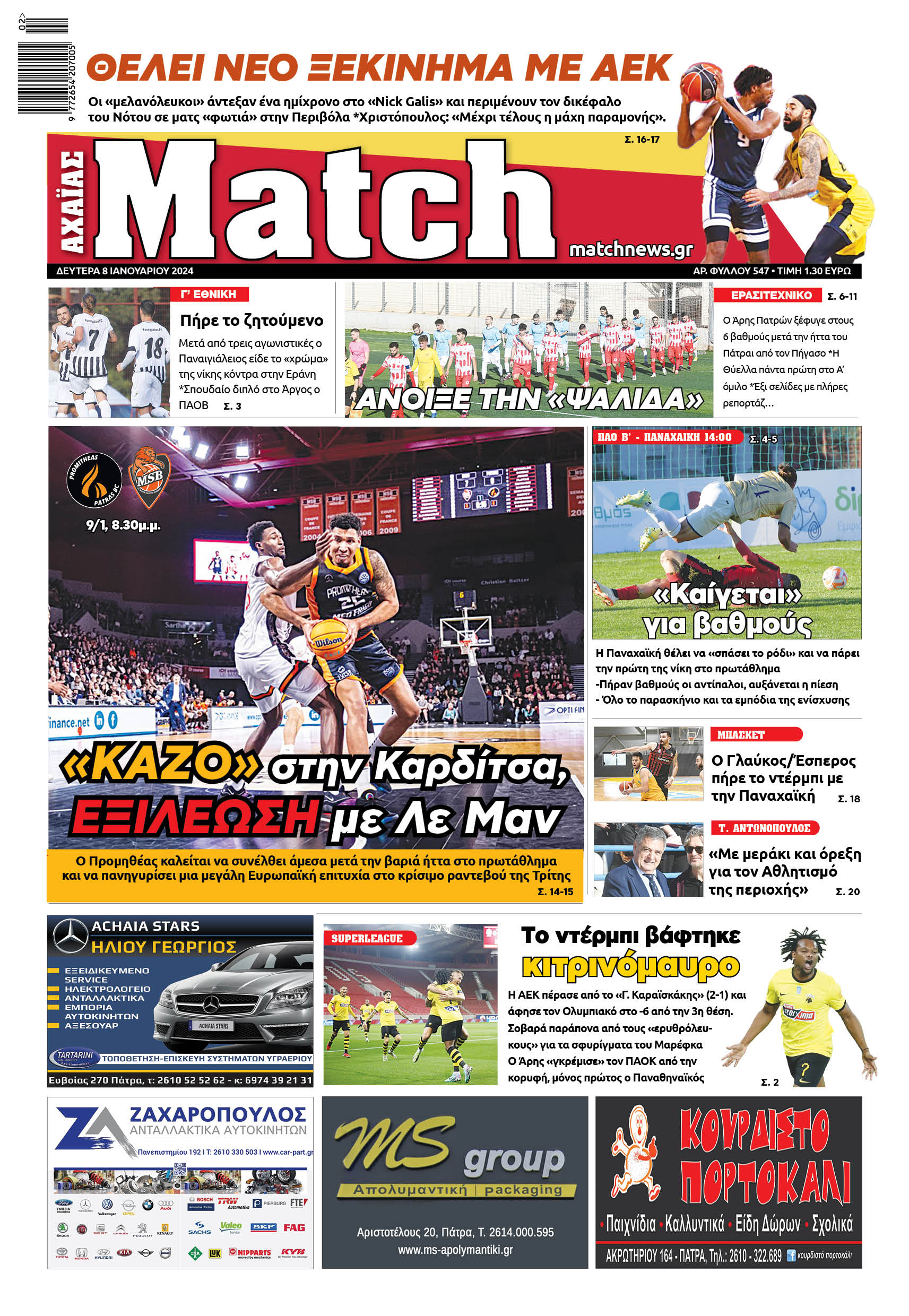 Πανδαισία αγώνων το Σαββατοκύριακο, με τη «Match» να έχει όλα τα νέα αλλά και φωτορεπορτάζ από τις μάχες των ομάδων. Ο Ν. Πατρώνης μιλά για το όραμα της United FC. Το παρασκήνιο μετακίνησης παίκτη από ομάδα της Πάτρας σε άλλο ιστορικό σωματείο της πόλης.
