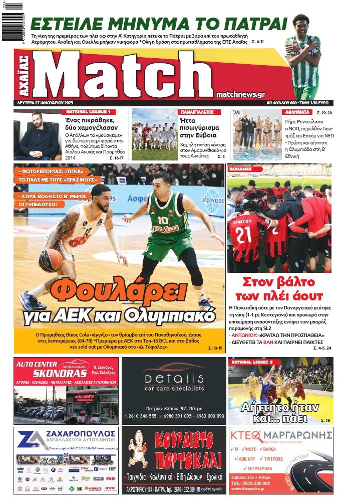 Διαβάστε στη «Match»: Ο Προμηθέας άγγιξε τον θρίαμβο και φουλάρει για ΑΕΚ και Ολυμπιακό