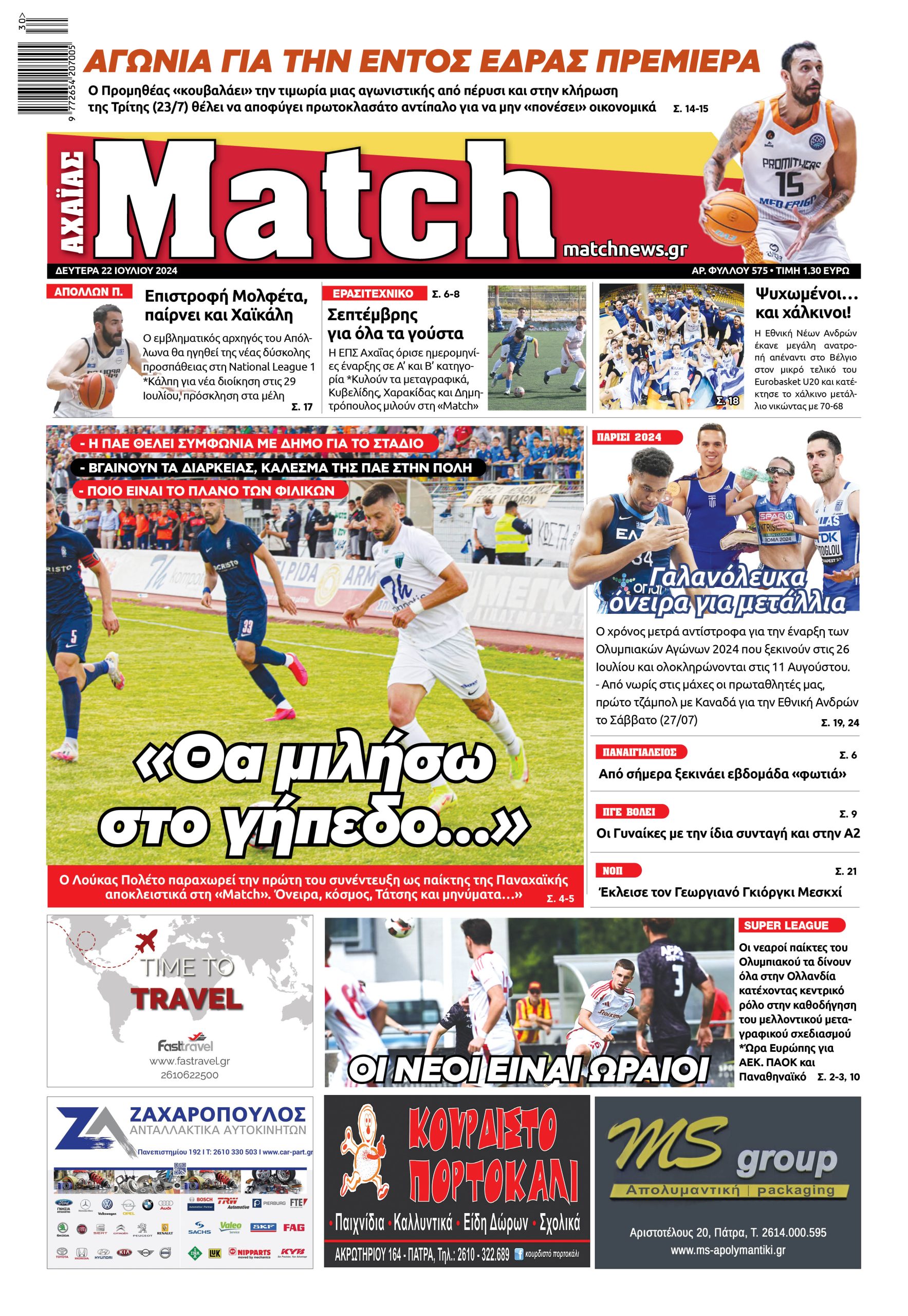 Ο Λούκας Πολέτο παραχωρεί την πρώτη του συνέντευξη ως παίκτης της Παναχαϊκής αποκλειστικά στη «Match». Όνειρα, κόσμος, Τάτσης και μηνύματα…»