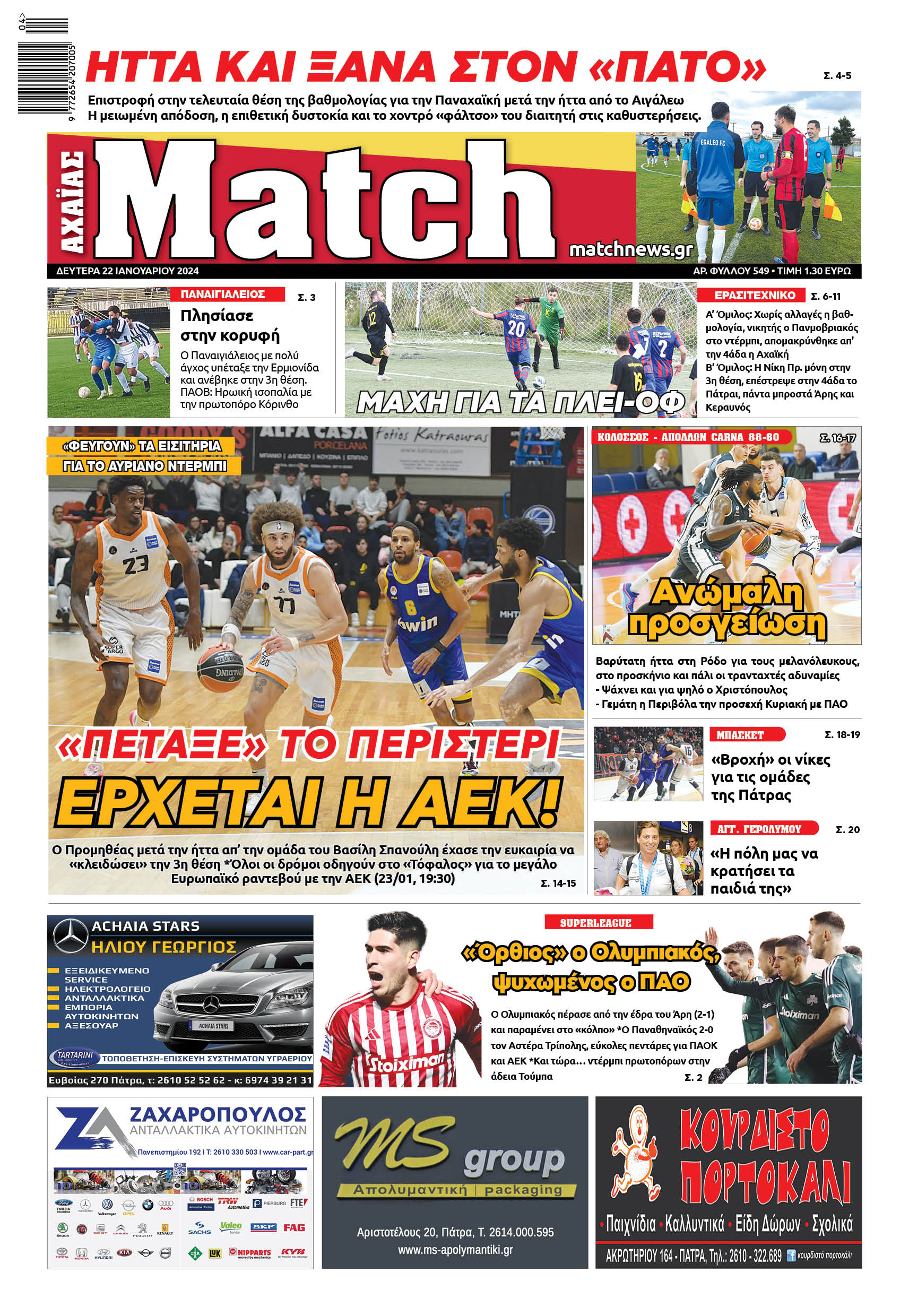 Διαβάστε στη «Match»: «Πέταξε» το Περιστέρι, έρχεται η ΑΕΚ!