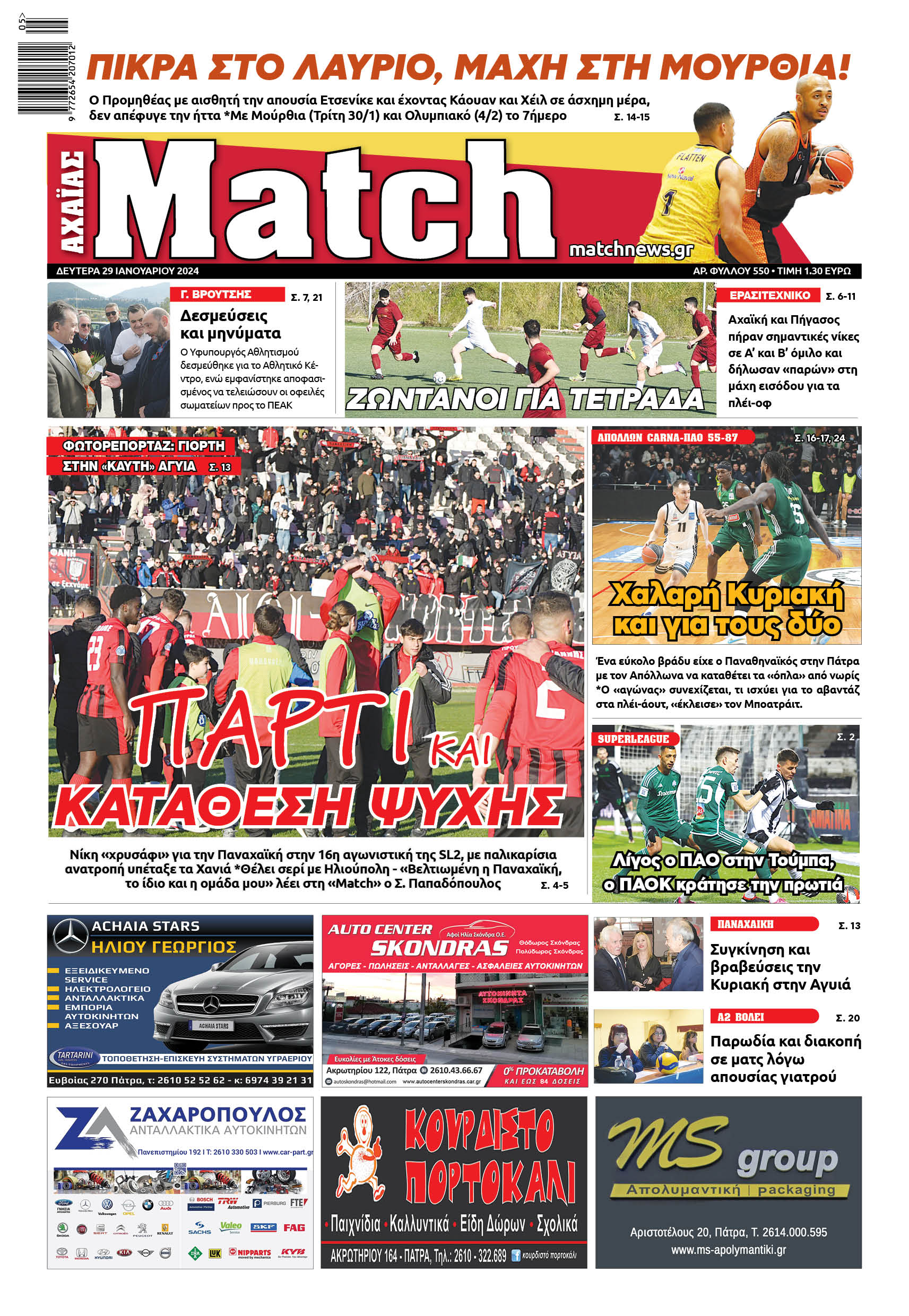 Διαβάστε στη «Match» που κυκλοφορεί: Πάρτι με ανατροπή για την Παναχαϊκή