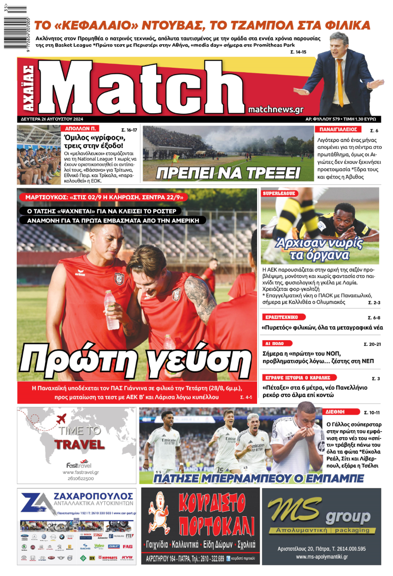 Διαβάστε στη «Match»: Ελλάδα σε διπλό ταμπλό, στο «κάδρο» τα Προσφυγικά για την Παναχαϊκή, τα πρώτα τεστ του Προμηθέα