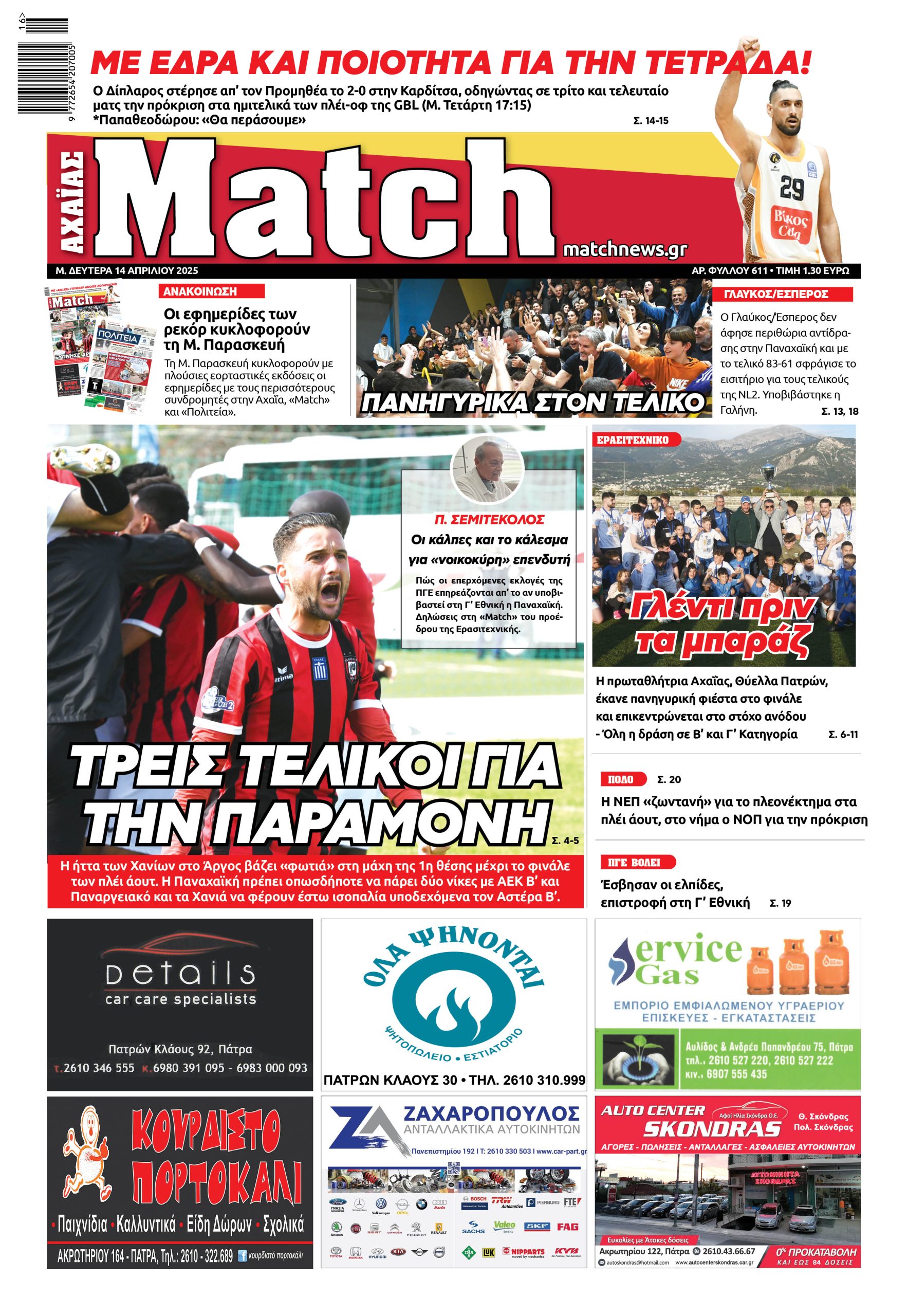Τη Μ. Παρασκευή κυκλοφορούν με πλούσιες εορταστικές εκδόσεις οι εφημερίδες με τους περισσότερους συνδρομητές στην Αχαΐα, «Match» και «Πολιτεία».