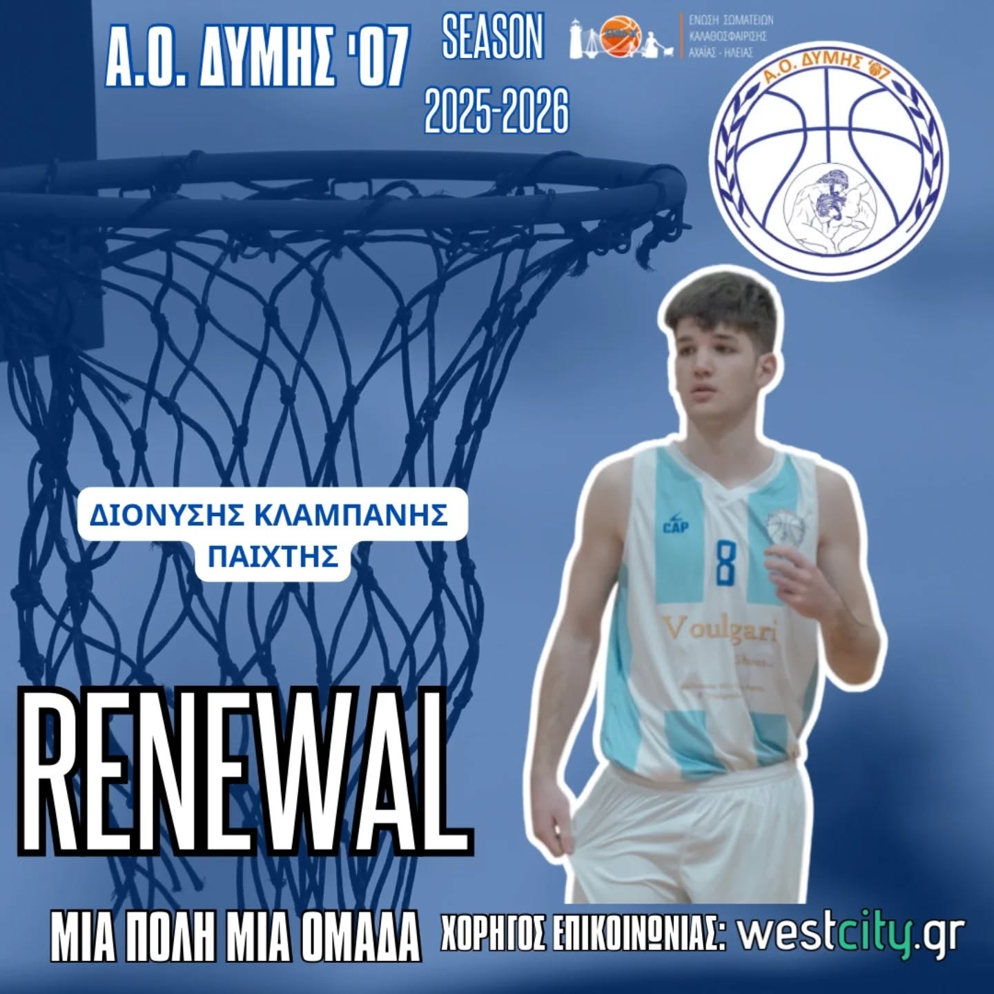 Ο ΑΟ ΔΥΜΗΣ 07, ανακοινώνει με χαρά την ανανέωση της συνεργασίας,με τον αθλητή Διονύση Κλαμπάνη.