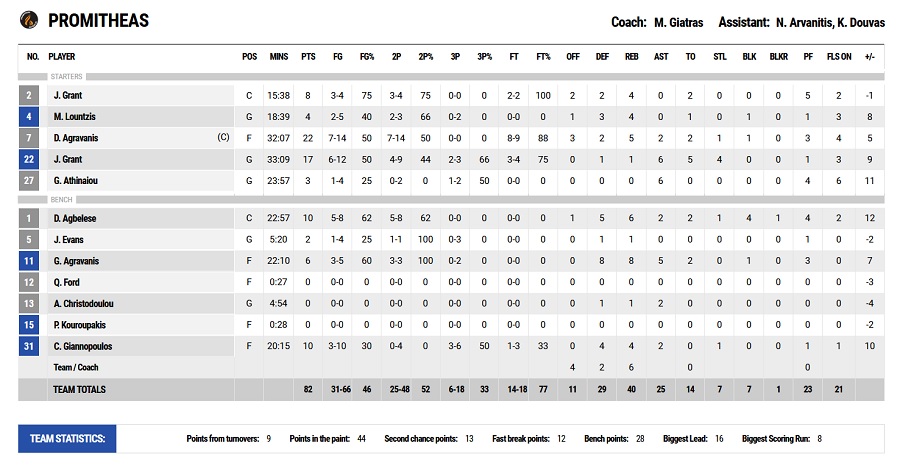 Οι Μάκης Γιατράς είχε σε εξαιρετική ημέρα τον Δημήτρη Αγραβάνη που οδήγησε επιθετικά τον Προμηθέα, ενώ σημαντικό ρόλο έπαιξε και ο Ντάνι Αγκμπελίς με τις δικές του τάπες στην τελευταία περίοδο.