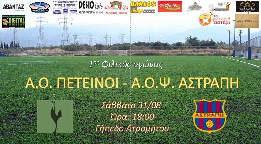 Η Αστραπή Ψαροφαίου συνεχίζει την προετοιμασία της με αμείωτο ρυθμό και το προσεχές Σάββατο (31/8) θα τεθεί αντιμέτωπη με τους Πετεινούς.