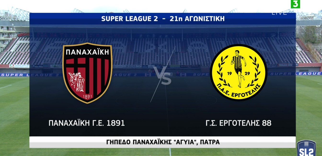 Ολοκληρώθηκε το πρώτο μέρος ανάμεσα στην Παναχαϊκή και τον Εργοτέλη στην Αγυιά για την 21η αγωνιστική της Superleague 2, με τις δυο ομάδες να οδηγούνται ισόπαλες στα αποδυτήρια με 1-1.