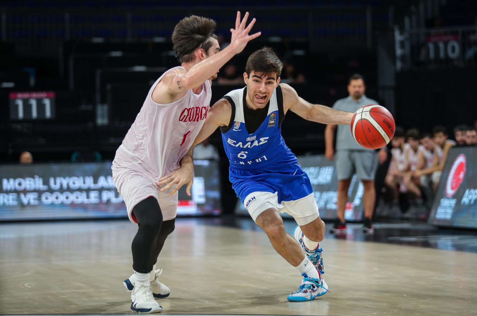 Η ελληνική ομάδα χρειάστηκε περίπου 15′ για να βρει τον ρυθμό της και να τον επιβάλλει. Οι Γεωργιανοί προηγήθηκαν στο μεγαλύτερο μέρος της πρώτης περιόδου (17-20, 8’30”) με την Ελλάδα να ισοφαρίζει περίπου τέσσερα λεπτά αργότερα (27-27). Ο Περικλής Κουρουπάκης έδωσε το προβάδισμα (29-27, 12’30”) και από το σημείο αυτό το αντιπροσωπευτικό μας συγκρότημα κρατούσε τα ηνία όλο και πιο σταθερά. Έφτασε στο +12 (53-41, 22’30”), στο +20 (67-47, 27’30”) με τον Λευτέρη Μαντζούκα να εκμεταλλεύεται μια μακρινή πάσα του Ιωσήφ Κολοβέρου και στο +31 (84-53, 37’30”) με τρίποντο του Τηλέμαχου Βησσαρίου. Ο Ανδρέας Καλόγηρος διαμόρφωσε το 87-53 (37’40”) για να ολοκληρωθεί η αναμέτρηση με το τελικό 89-58.