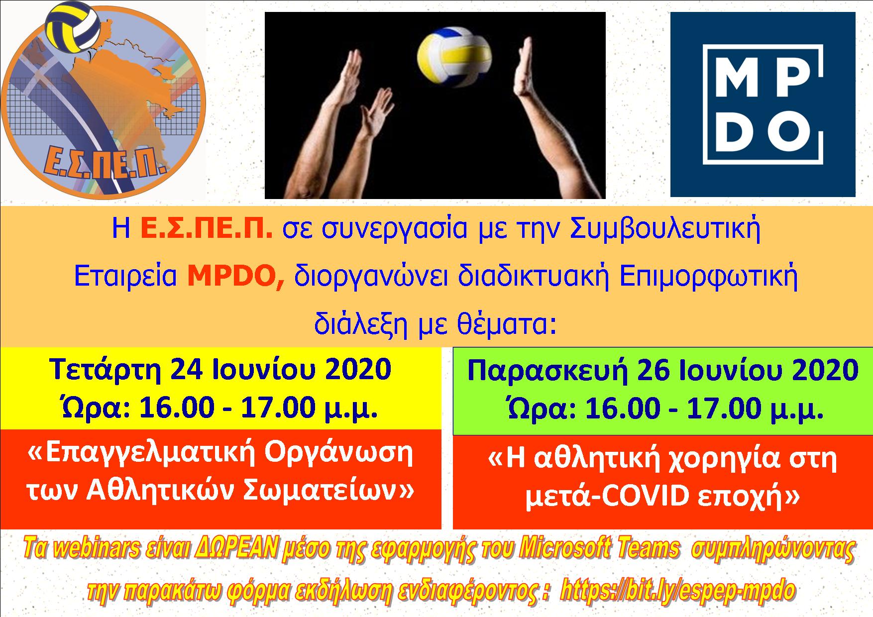 Σε συνεργασία με την ομάδα της Συμβουλευτικής Εταιρείας MPDO (https://www.mpdo.gr/) σχεδιάστηκαν 2 ΔΩΡΕΑΝ σεμινάρια για τα σωματεία, με θέματα οργάνωσης αθλητικών σωματείων και αθλητικής χορηγίας στην μετά-COVID εποχή.