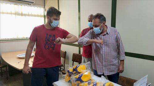 Το αθλητικό υλικό παρέδωσαν στις ομάδες του Γ.Α.Σ. ΠΑΜΒΟΧΑΪΚΟΥ, της Α.Ε.Π. ΟΛΥΜΠΙΑΣ, του Γ.Σ. ΑΘΛΟΣ ΠΑΤΡΕΩΝ και ΣΠΑΡΤΙΑΤΙΚΟ Γ.Σ., ο πρόεδρος της ΕΣΠΕΠ κ. ΚΑΝΕΛΛΟΠΟΥΛΟΣ ΘΕΟΔΩΡΟΣ, ο Αντιπρόεδρος της ΕΟΠΕ και μέλος του Δ.Σ. της Ένωσης κ. ΑΝΤΩΝΟΠΟΥΛΟΣ ΠΑΝΑΓΙΩΤΗΣ και ο Γενικός Γραμματέας της Ε.Σ.Α.Π. κ. ΠΑΠΑΣΤΑΘΟΠΟΥΛΟΣ ΚΩΣΤΑΣ.
