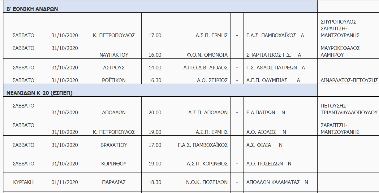 Αποστολές «εκτός έδρας» έχουν οι Άθλος και Ολυμπιάδα. Η ομάδα του Σπυρόπουλου φιλοξενείται από τον Αίολο Κυνουργίας, ενώ εκείνη του Συνοδινού από τον Σείριο Παραλιάς.