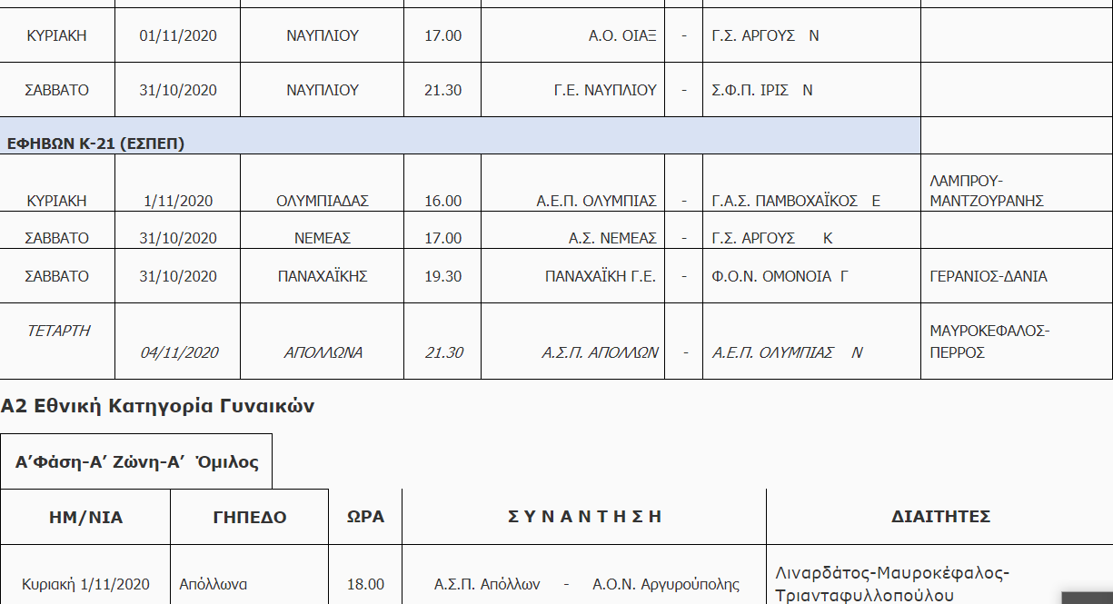 Για την Α2 Εθνική Γυναικών, ο Απόλλωνας του Καράβολα φιλοξενεί τον Α.Ο.Ν. Αργυρούπολης, ενώ ενδιαφέρουσες αναμετρήσεις έχουμε και στα Αναπτυξιακά πρωταθλήματα, όπως μπορείτε να δείτε παρακάτω στο πρόγραμμα.