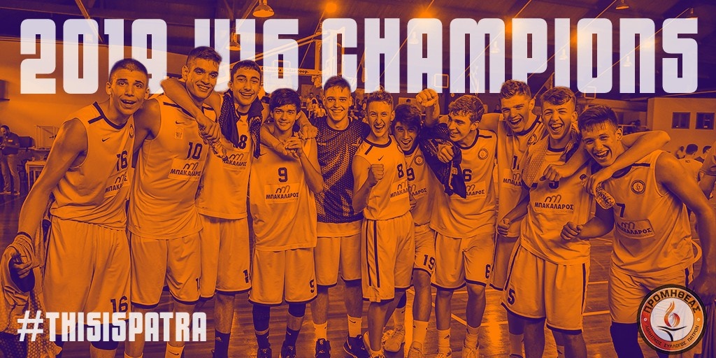 Η Πάτρα και ο Προμηθέας πανηγυρίζουν την κατάκτηση του Τίτλου του Πρωταθλητή Ελλάδας για την Παιδική ομάδα του Προμηθέα που κατέλαβε αήττητη την πρωτιά και το χρυσό μετάλλιο στο Πανελλήνιο Πρωτάθλημα U16 στο Μέτσοβο, πετυχαίνοντας την 5η νίκη της στον «άτυπο» τελικό της διοργάνωσης με το επιβλητικό 82-48 επί της ΔΕΚΑ.