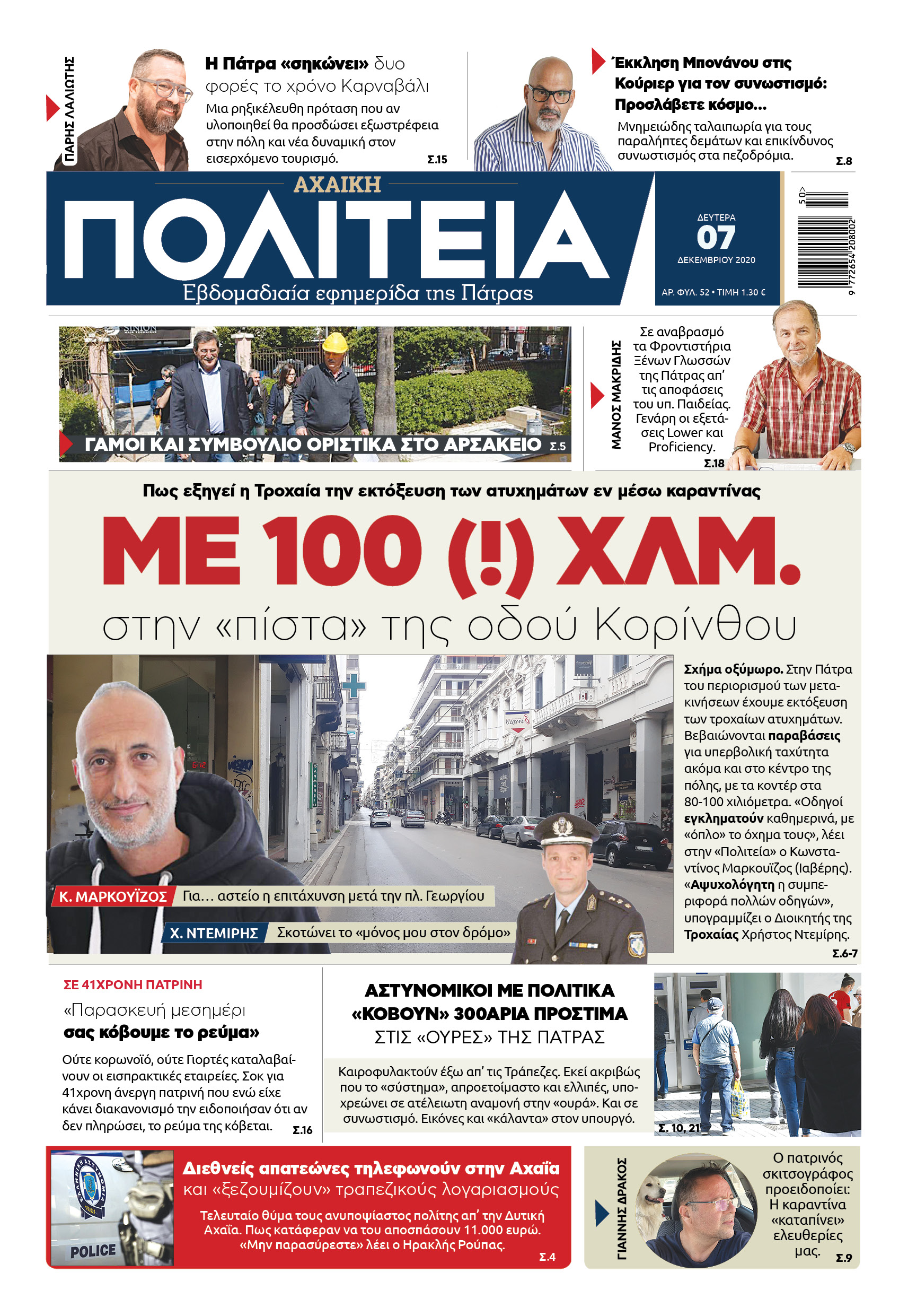 Το είχαμε πει απ’ το πρώτο φύλλο μας. Στις 6 Δεκεμβρίου 2019. Πριν έναν χρόνο ακριβώς: «Κόμμα» της «Πολιτείας» είναι η Πάτρα και ο σεβασμός στον αναγνώστη.