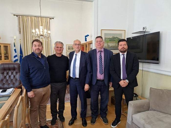 Στην έδρα της Περιφέρειας Πελοποννήσου, πραγματοποιήθηκε η συνάντηση με το Περιφερειάρχη Δημήτρη Πτωχό, παρουσία και του πρόεδρου της ΕΚΑΣΚΕΝΟΠ Σταύρου Κουκάκη, του γ.γ. της ένωσης Θανάση Μακαρούνη και του γενικού διευθυντή της ΕΟΚ, Ντίνου Σβερκούνου.