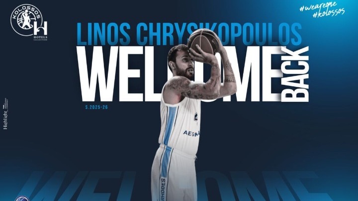 «Η ΚΑΕ Κολοσσός H Hotels Collection ανακοινώνει τη συμφωνία της με τον Λίνο Χρυσικόπουλο, που επιστρέφει στην ομάδα μας έπειτα από δύο χρόνια.