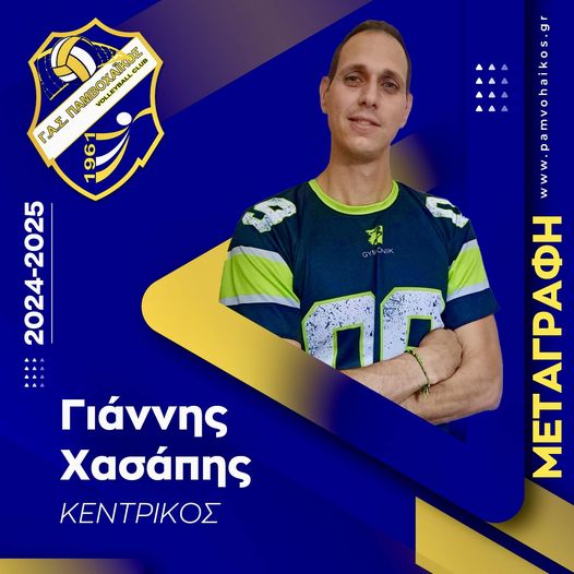 “Η Διοίκηση είναι στην ευχάριστη θέση να ανακοινώσει την πρώτη της μεταγραφή για την νέα σεζόν .Την απόκτηση του κεντρικού Γιάννη Χασάπη. Ο Γιάννης με μεγάλη εμπειρία στο χώρο του Βόλεϋ ,συμφώνησε με την διοίκηση & έτσι θα είναι παρών στην νέα μας προσπάθεια .