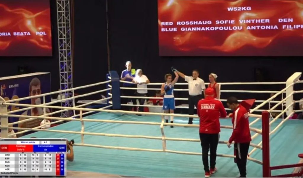 Με μια εκπληκτική εμφάνιση η πρωταθλήτρια της Παναχαϊκής και του Νίκου Πλέα επικράτησε με 5-0 στα σημεία της Δανής Vinther Sofie Rosshaug και εξασφάλισε το πρώτο μετάλλιο για την Εθνική ομάδα.