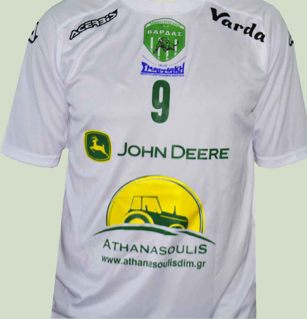 Με επίσημη ανακοίνωσή του ο Π.Α.Ο Βάρδας-Ι.Ε.Κ Σμαρνάκη ευχαρίστησε δημόσια τον χορηγό του συλλόγου, που τοποθετείται και στο μπροστινό μέρος της νέα φανέλας του, τον “John Deere Αθανασούλης”.