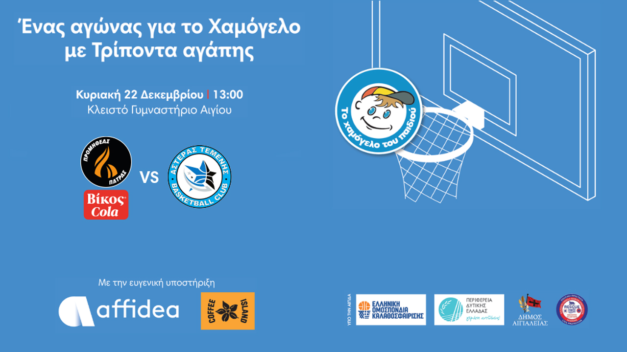 Ένας ξεχωριστός φιλανθρωπικός αγώνας μπάσκετ θα πραγματοποιηθεί την Κυριακή 22 Δεκεμβρίου, στις 13:00, στο Κλειστό Γυμναστήριο Αιγίου.