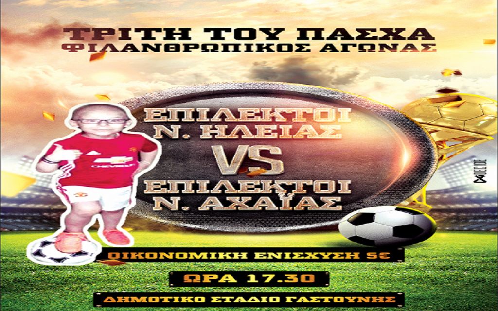 Σήμερα στις 17:30 στο Δημοτικό Στάδιο Γαστούνης θα διεξαχθεί φιλικό για φιλανθρωπικό σκοπό και για χάρη του μικρού Χρήστου Κωστόπουλου, ο οποίος ταλαιπωρείται από πρόβλημα υγείας.