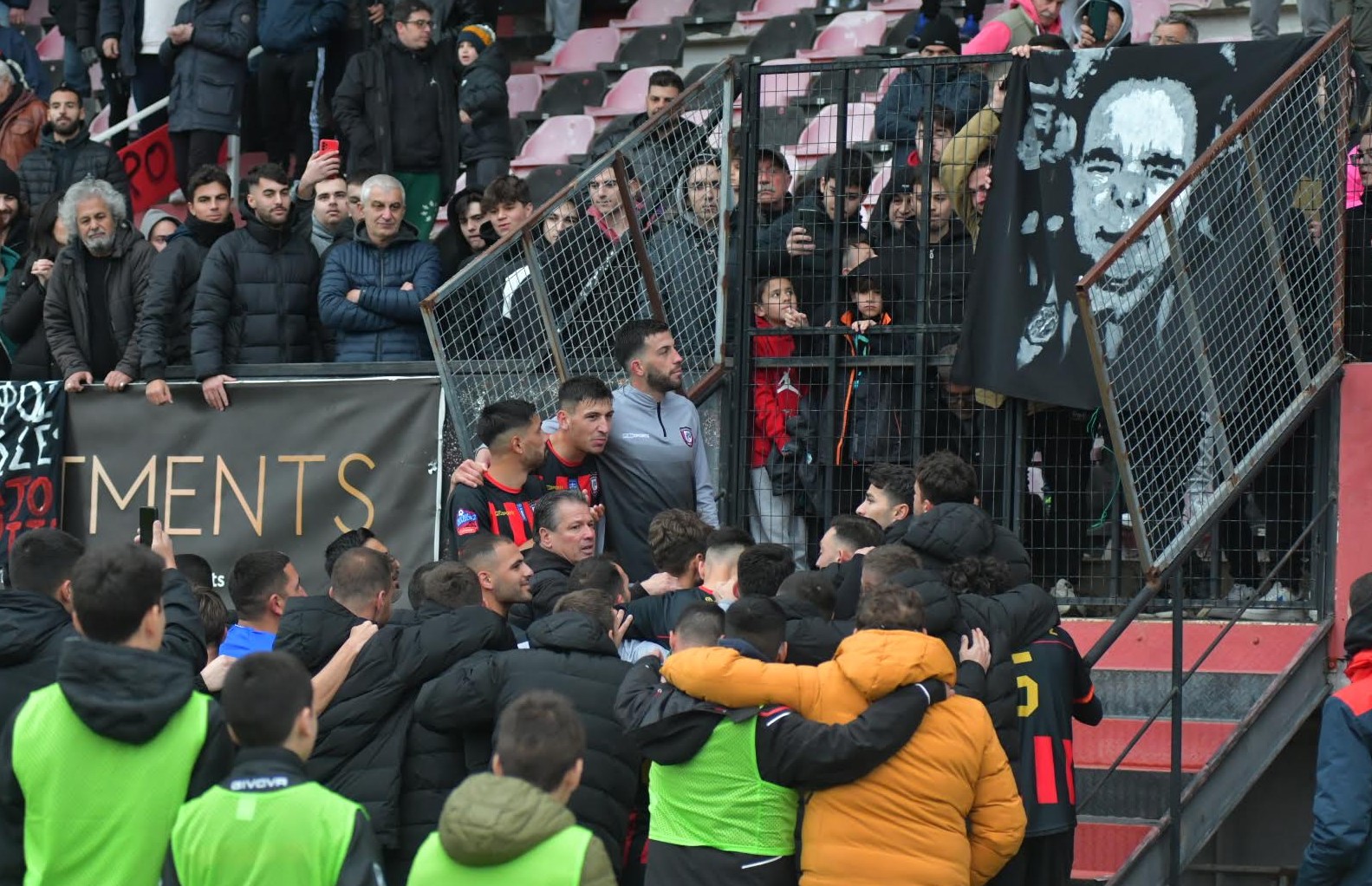 Μετά το τέλος του νικηφόρου αγώνα με την ΑΕΚ Β’ οι φίλαθλοι της Παναχαϊκής και σύσσωμη η ομάδα αγκαλιασμένοι έκατσαν μπροστά από το πανό που είχε αναρτηθεί στην εξέδρα με τη μορφή του Φώτη Φωτεινόπουλου.