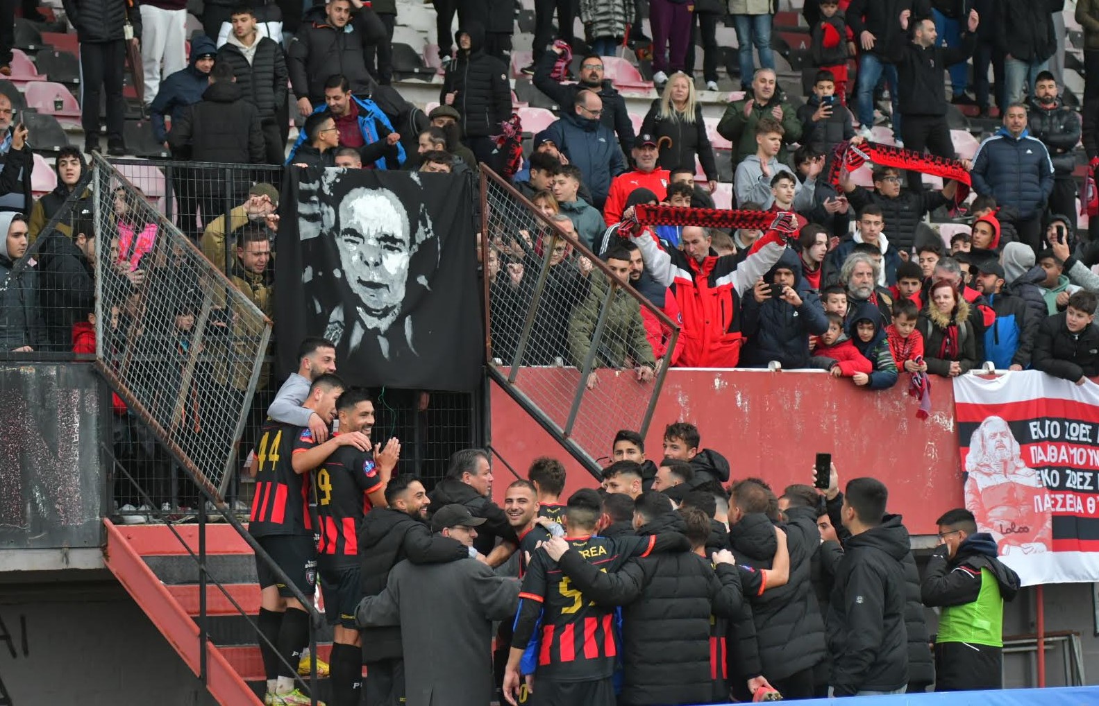 Μετά το τέλος του νικηφόρου αγώνα με την ΑΕΚ Β’ οι φίλαθλοι της Παναχαϊκής και σύσσωμη η ομάδα αγκαλιασμένοι έκατσαν μπροστά από το πανό που είχε αναρτηθεί στην εξέδρα με τη μορφή του Φώτη Φωτεινόπουλου.