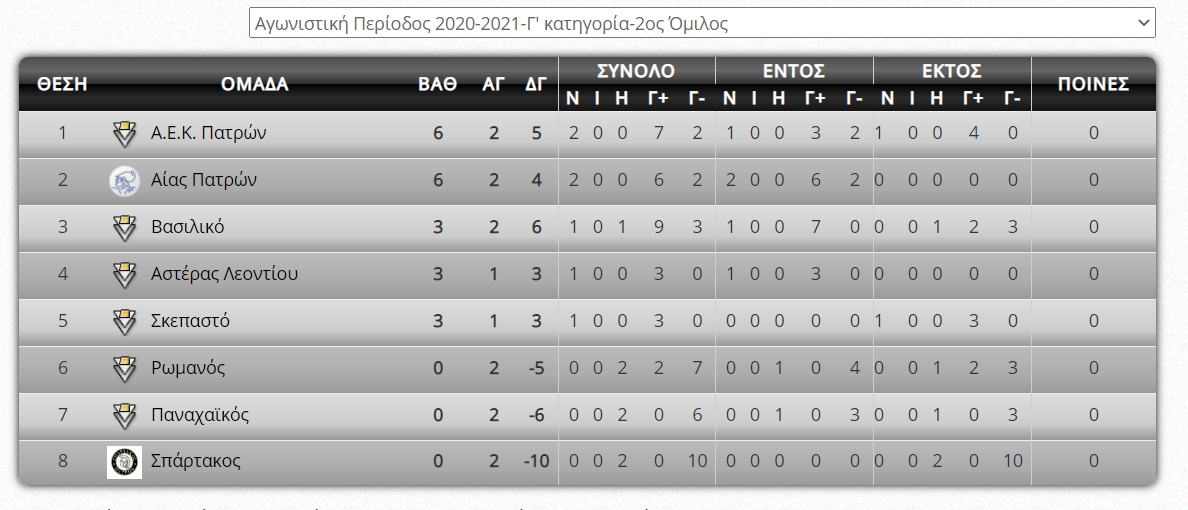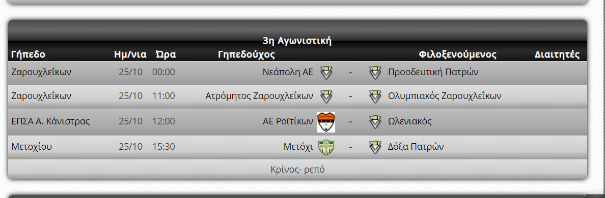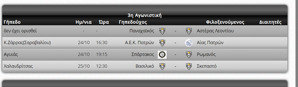 24/10, 16.30 ΑΕΚ Πατρών-Αίας Πατρών