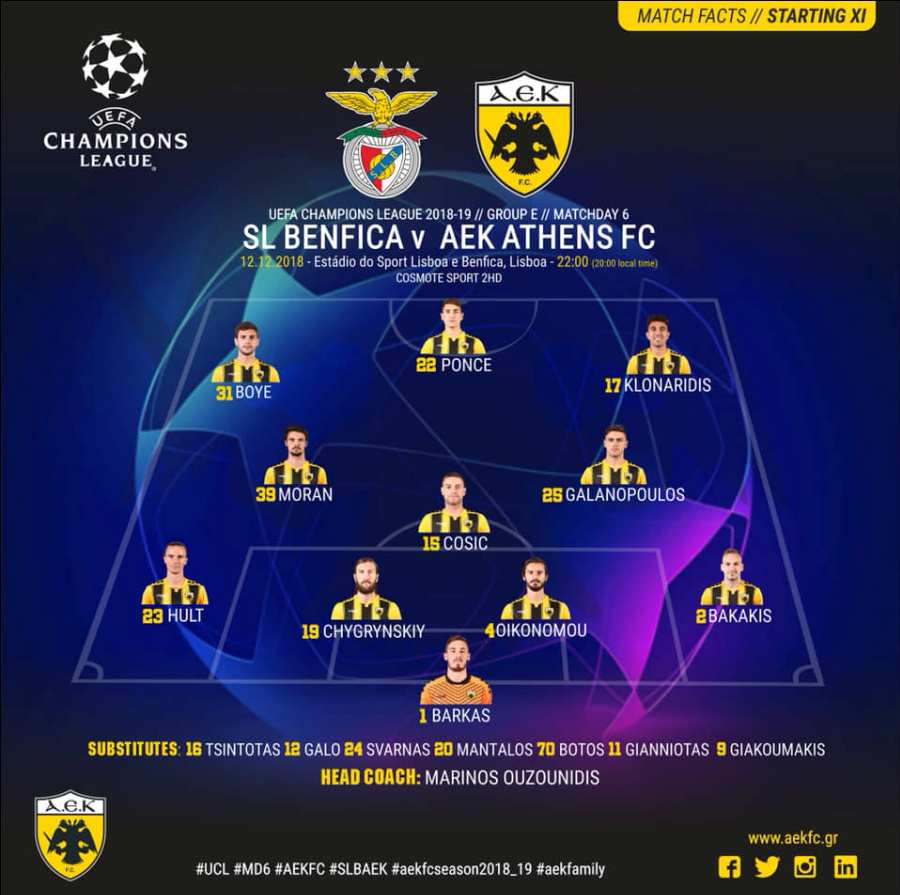 H ενδεκάδα της ΑΕΚ με Μπενφίκα-Εκπλήξεις από Ουζουνίδη