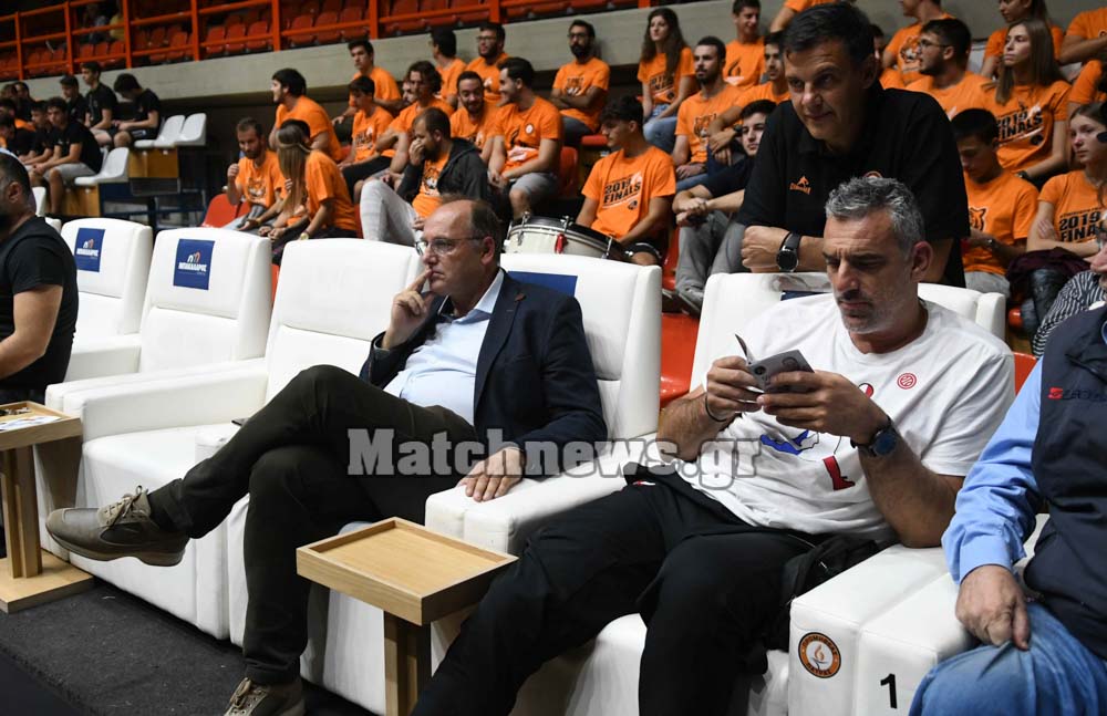Όπως ήταν φυσικό, ο πρώην τεχνικός του Προμηθέα που διατηρεί πολλούς καλούς φίλους από τη θητεία του στον «πορτοκαλί» πάγκο, είχε τη δυνατότητα να τα πει με κάποιους από αυτούς που είδε στο «Promitheas Park».