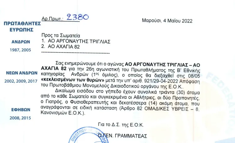 Η Αχαγιά ’82 πήρε την πρόκριση χωρίς αγώνα, παραιτήθηκε ο Δούκας