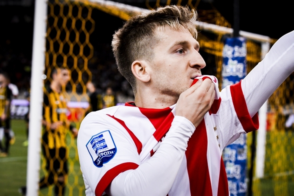 Γκολ για τον Ολυμπιακό με τον Οφόε με τη σέντρα του δευτέρου ημιχρόνου.